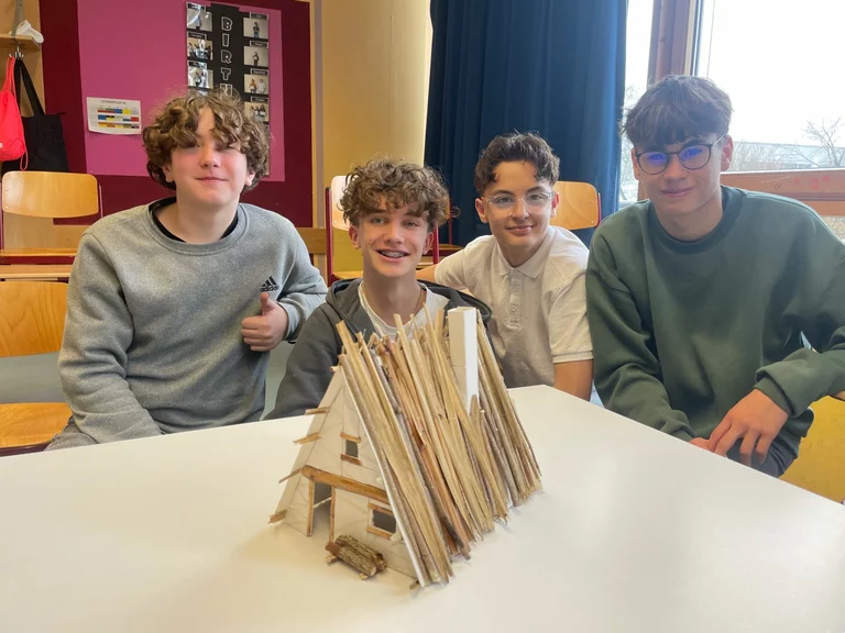 In diesem Schuljahr stand im Bereich „Modellbau“ etwas Neues auf dem Plan. Die Schüler bauten dieses Mal zwei verschiedene Modellhäuser, die beide ein – mehr oder weniger – reales Vorbild haben. Aus Naturmaterialien, die sie auf unserem Schulgelände sammelten, und aus Karton entstanden hier eine alte römische Villa im Maßstab 1:87 und ein Häuschen, das viele aus Comic-Heftchen kennen! Ein listiger Gallier mit einem wildschweinliebenden Freund wohnt da drin: Asterix!
