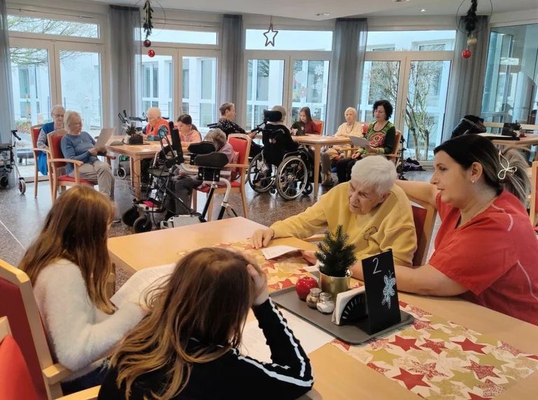 Am Montag, dem 8. Dezember 2025 schallten am Nachmittag bekannte deutsche Weihnachtslieder durch den Eingangsbereich des BRK Senioren- und Servicezentrums Neutraubling. Der Chor bestand einerseits aus sechs Schülerinnen der 5. und 6. Jahrgangsstufe, die an der Staatlichen Realschule Neutraubling das Wahlfach „Soziales Engagement“ unter der Leitung von Melanie Ranker-Hopp besuchen.