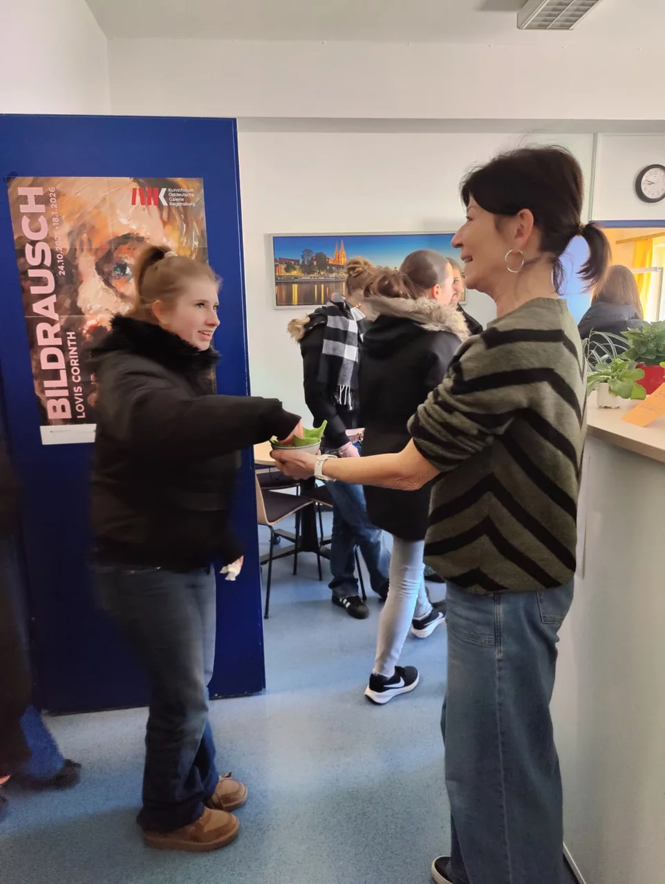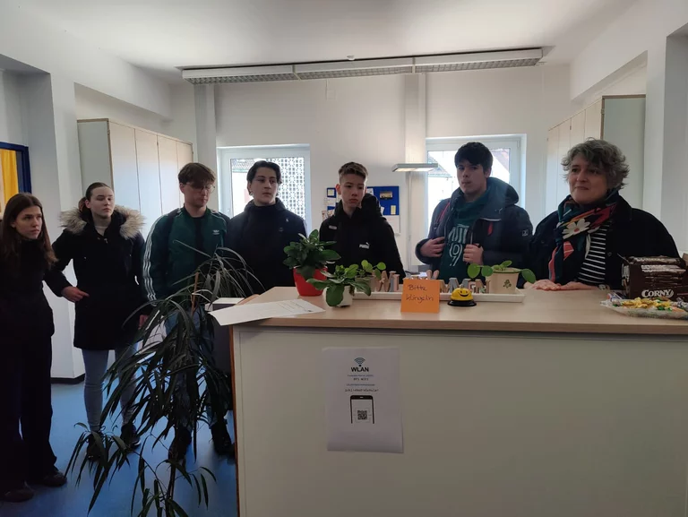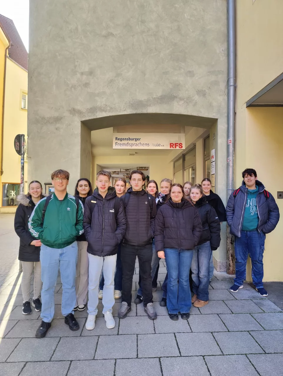 Am 27.03.2026, dem letzten Schultag vor den Osterferien, durfte die Klasse 9d der Realschule Neutraubling (Französischzweig) mit ihren 16 Schülerinnen und Schülern die Regensburger Fremdsprachenschule besuchen. Gleich zu Beginn wurden alle von Schulleiterin Fanella Raab herzlich empfangen – inklusive eines kleinen Schoko-Osterhasen als freundliche Aufmerksamkeit.