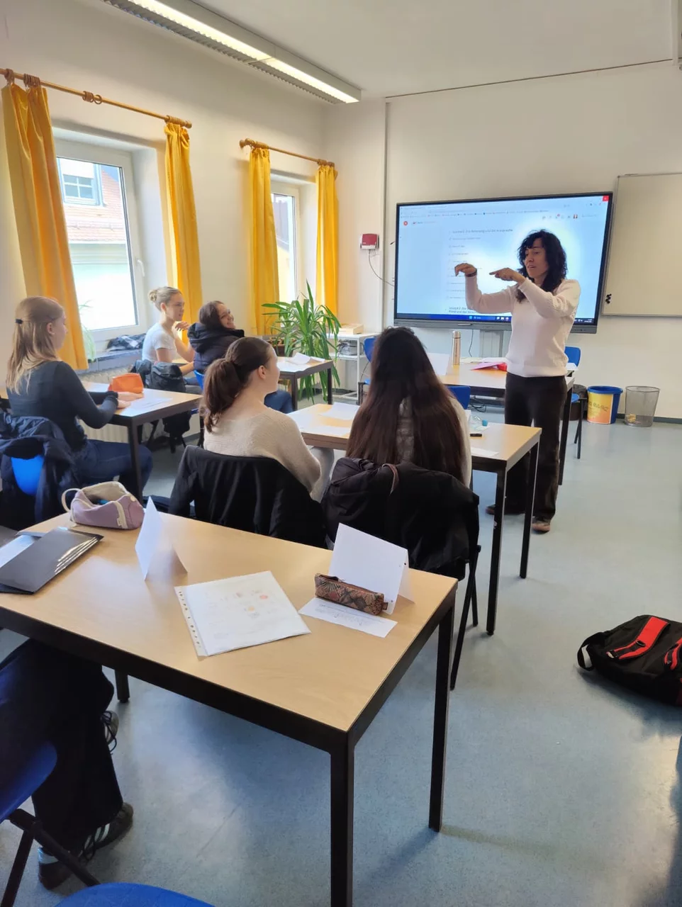 Frau Beckerle betonte die Bedeutung fremdsprachlicher Kompetenzen über KI hinaus für die Zukunft der Schülerinnen und Schüler, die von großer Wichtigkeit sind und bleiben werden. Unsere Klasse wiederum dankte der Regensburger Fremdsprachenschule für die Gastfreundschaft und die inspirierenden Einblicke.