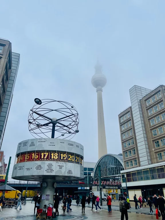 Alexanderplatz mit Fernsehturm, Rotem Rathaus und Weltzeituhr.
