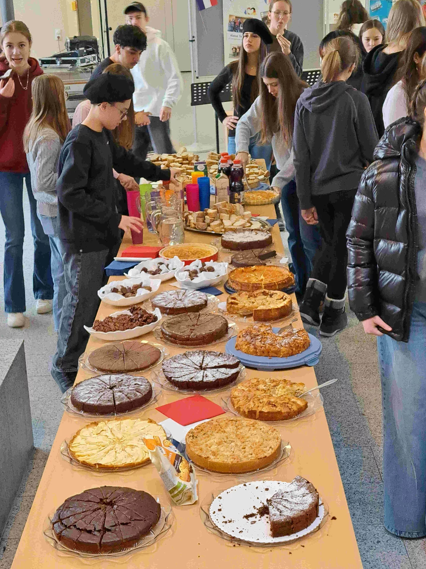 Abgerundet wurde der Festakt durch ein abwechslungsreiches Buffet mit vielen von den Schülerinnen und Schülern selbstgemachten französischen Spezialitäten wie rochers, tarte aux pommes, tarte au chocolat oder quiche lorraine.