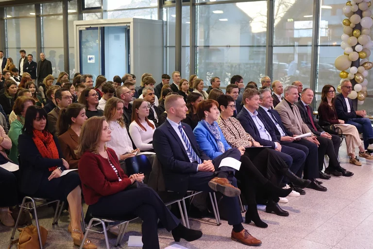 Für das Projekt „Talent und Verantwortung“ werden Schülerinnen und Schüler von FOS/BOS, Mittelschulen, Realschulen und Gymnasien aus Stadt und Landkreis Regensburg von ihren Schulleitungen empfohlen und vom Arbeitskreis SCHULEWIRTSCHAFT ausgewählt. Diese Jugendlichen zeichnen sich nicht nur durch ihre guten schulischen Leistungen aus, sondern auch durch ihr großes Engagement im schulischen oder ehrenamtlichen Bereich. Von Oktober 2025 bis März 2026 hatten die Schülerinnen und Schüler das Privileg, an verschiedenen Modulen teilzunehmen, die den Übergang von der Schule ins Berufsleben erleichtern. Die bei der Abschlussfeier überreichten Teilnahmezertifikate sind ebenfalls ein wichtiger Bestandteil bei Bewerbungen. Schulamtsdirektorin Birgit Sandmann und Hans Schmidt, stellvertretender Hauptgeschäftsführer der Handwerkskammer Niederbayern-Oberpfalz, betonten als Vorsitzende des Arbeitskreises SCHULEWIRTSCHAFT in ihren Begrüßungsworten, wie wichtig es sei, Talente bei jungen Menschen zu entdecken und diese Talente durch Bildungsinstitutionen und die Gesellschaft zu fördern. Auch Realschuldirektor Andreas Gruber und Harald Stadler, 1. Bürgermeister von Neutraubling, sowie Dr. Sabine Kellner-Mayrhofer, Bildungsreferentin der Stadt Regensburg, würdigten in ihren Grußworten die Bedeutung des Projekts „Talent und Verantwortung“ für die Persönlichkeitsentwicklung der Heranwachsenden. Kernstück der Abendveranstaltung war die Abschlusspräsentation aller angebotenen Projektbausteine durch die 44 ausgewählten Schülerinnen und Schüler. Diese schilderten den anwesenden Gästen anschaulich und abwechslungsreich die in ihren drei Gruppen gemachten Einblicke in das Berufsleben und sprachen allen Verantwortlichen für diese besondere, vielseitige Förderung ihren Dank aus.