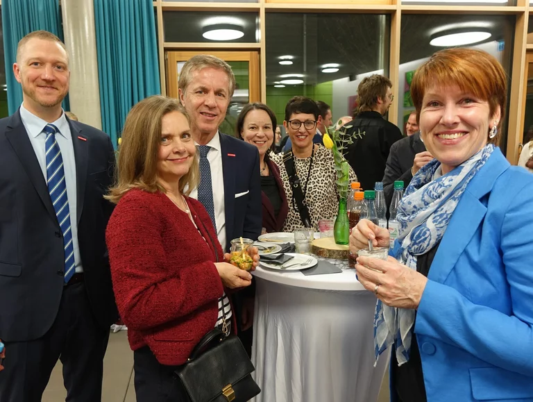 Mit einem gemütlichen Beisammensein in der schön dekorierten Schulmensa klang der Festakt aus. Das dabei angebotene umfangreiche Buffet wurde von den Lehrkräften Tina Poppmacher und Nicola Diekmann mit den Schülern des Ernährung- und Gesundheitszweiges sowie dem Ehepaar Roith als Mensabetreiber vorbereitet und fand großen Zuspruch.