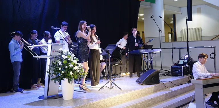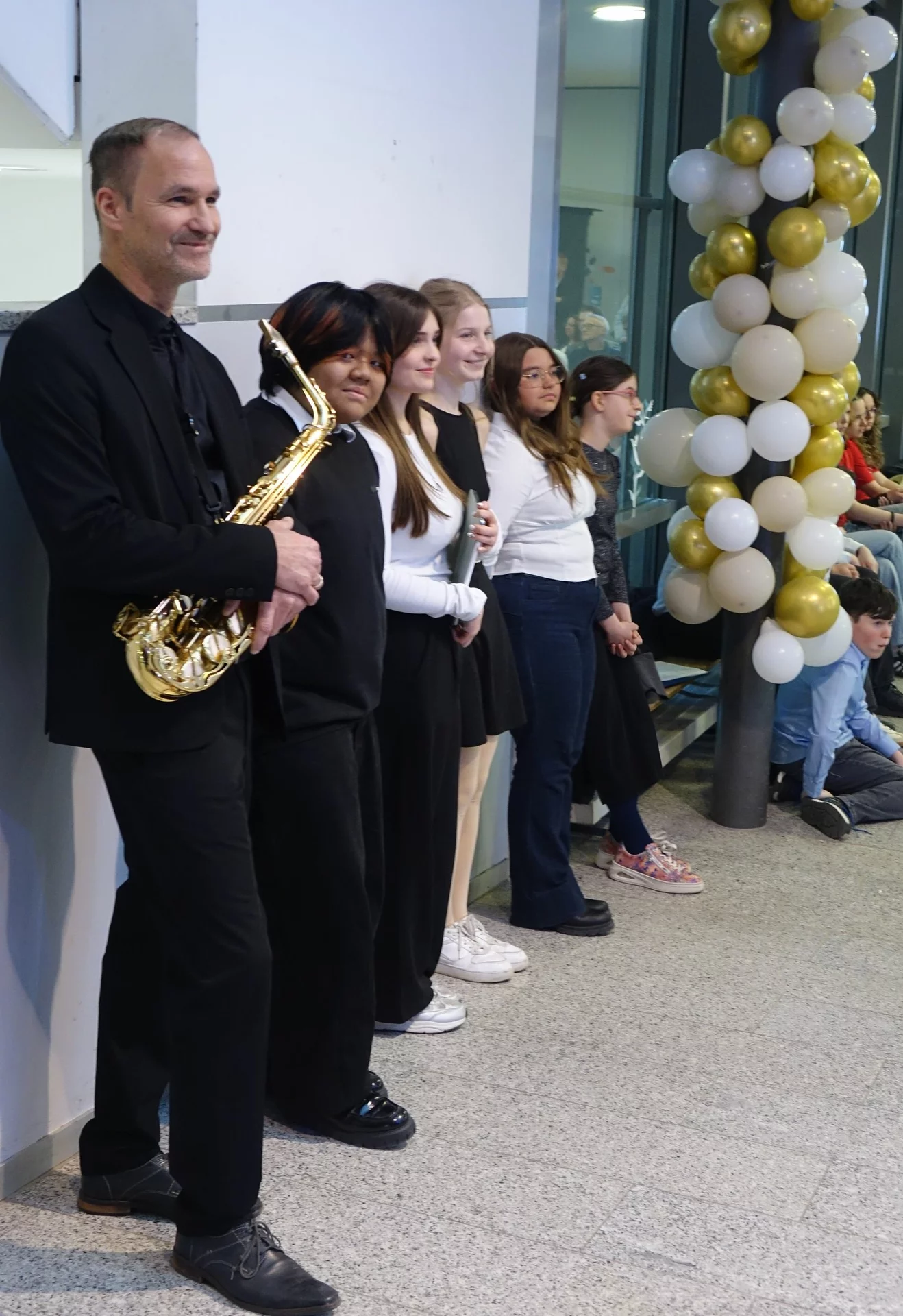 Die Abschlussfeier wurde würdig umrahmt durch Schulband und Schulchor der Realschule Neutraubling (unter Leitung der Musiklehrkräfte RSK Martin Kerscher, Martina Melcher und Susanne Wulf), die mit ihren musikalischen Einlagen die Gäste beindruckten. Für eine gelungene Licht- und Tontechnik sowie den Bühnenaufbau sorgte Lehrer Tom Kessler mit seinem Schüler-Technikteam.