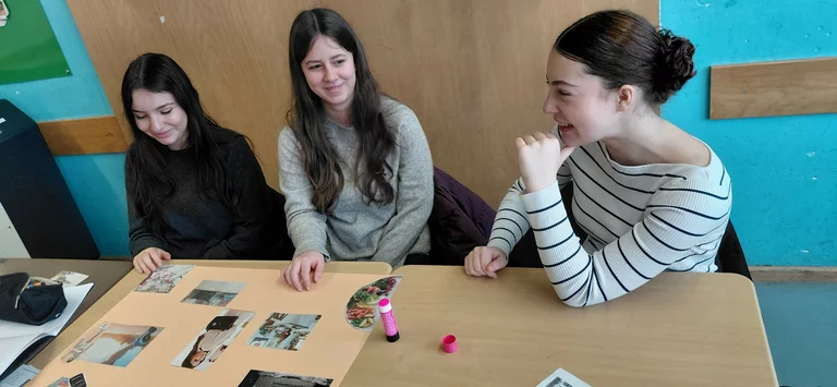Zum Schluss sangen wir mit José Feliciano sein weltberühmtes Lied Feliz Navidad. Nach Weihnachten gestalteten wir die traditionelle Ausstellung in der Aula: ¿Qué te gustó en las vacaciones?- Was gefiel dir in den Ferien? Begleitet von spanischen Songs arbeiteten wir fleißig an den Collagen und hatten sehr viel Spaß.