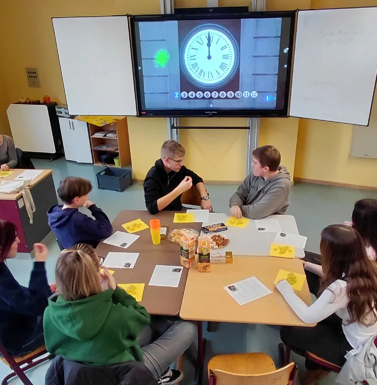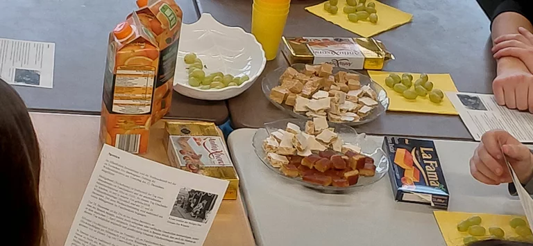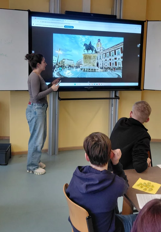 Dazu bereichert Sara aus Valencia als Fremdsprachenassistentin den Kurs. Unser Highlight war traditionell das Weihnachtsfest mit all seinen Bräuchen. Anna (Frau Schafbauer) und Sara informierten uns über das spanische Weihnachtsfest und zeigten Filme über den „gordo“, die berühmte Weihnachtslotterie, sowie die cabalgata de reyes, den traditionellen Umzug am Dreikönigstag. Dann folgte die 12-Weintrauben-Challenge an Silvester: Zu den 12 Glockenschlägen an Silvester (campanadas) aßen wir je eine Traube. Das bringt Glück im neuen Jahr. Anschließend ließen wir uns spanische Leckereien schmecken, wie tortilla, chorizo (Salami), jamón (Schinken), manchego (Käse) und zum Schluss mehrere Sorten der leckeren turrones (Süßigkeit mit Mandeln).