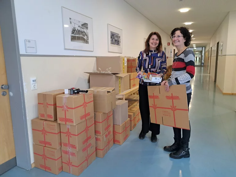 Auch in diesem Schuljahr nahm die Schulfamilie der Staatlichen Realschule Neutraubling wieder an der Aktion „Johanniter-Weihnachtstrucker“ teil, die notleidenden Menschen in Südosteuropa und seit der Corona-Pandemie auch hilfsbedürftigen Personen in Deutschland zugutekommt. Seit Ende November packten die Religions- und Ethiklehrkräfte sowie einige Klassenleiterinnen mit ihren Schülerinnen und Schülern fleißig Pakete, die neben Grundnahrungsmitteln wie z.B. Mehl, Nudeln und Reis auch Hygieneartikel, Süßigkeiten und kleinere Geschenke für Kinder beinhalten. Außerdem beteiligten sich viele Kolleginnen und Kollegen an diesem Projekt, das von Frau Ranker-Hopp koordiniert wurde. Somit konnten am Montag, dem 15. Dezember 2025 an die Johanniter 42 Pakete, welche für jeweils eine Familie ein Zeichen der Hoffnung bedeuten, für den Weitertransport übergeben werden.